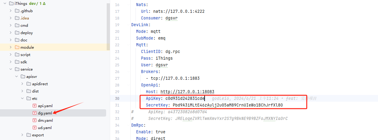 将秘钥填至联犀的配置文件中
